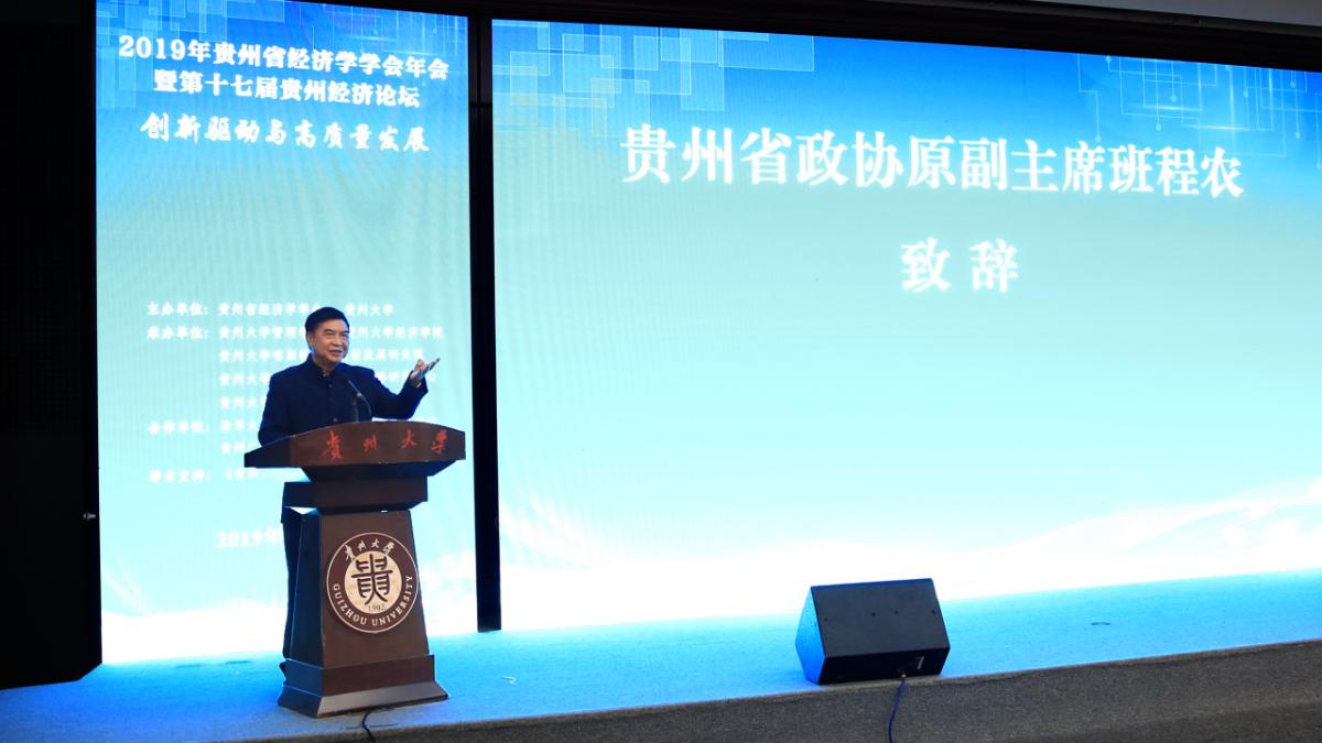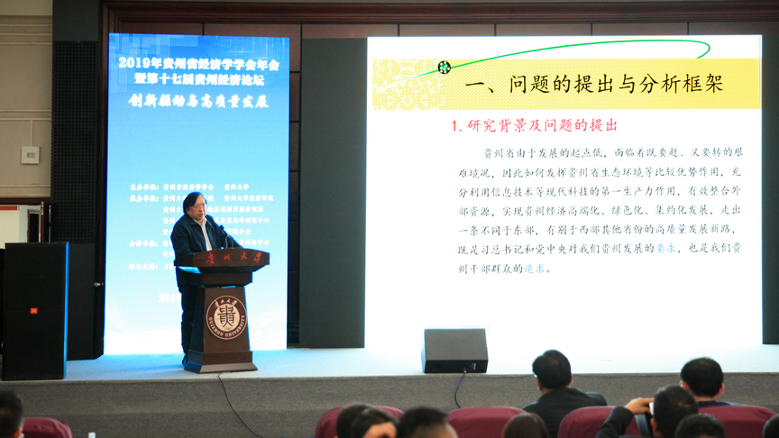 2019年10月19日,2019年贵州省经济学学会年会暨第十七届贵州经济论坛在贵州大学东区行政楼1号报告厅隆重召开。本次会议由贵州省经济学学会和贵州大学联合主办,新利网页版,新利(中国)官方在线登录、贵州大学经济学院、贵州大学喀斯特地区创新发展研究院、贵州大学喀斯特地区发展战略研究中心以及贵州大学校友总会管理学院分会联合承办。此次会议的主题为“创新驱动与高质量发展”,吸引了来自省内外创新学者、政企创新实践者、科研院所相关领域人员300余名。与会代表共商创新驱动模式打造贵州经济发展新引擎,谋求新时代经济与社会的高质量发展。