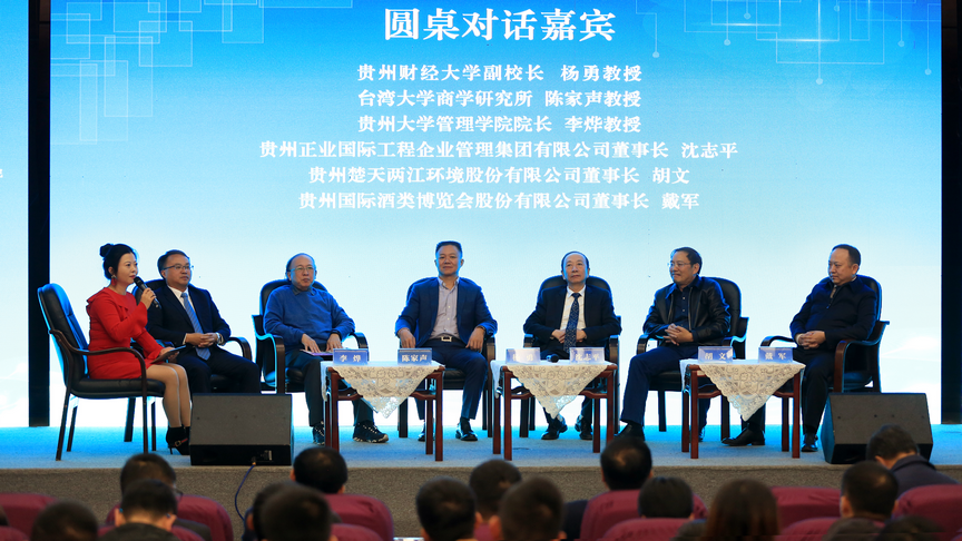 此外,会议还设置了圆桌对话。对话的六位嘉宾分别是来自高校的杨勇副校长、陈家声教授、李烨教授以及来自企业界的三位董事长沈志平、胡文、戴军。六位专家学者、企业家们共同就贵州如何“创新驱动与高质量发展”问题进行深入讨论。对话过程现场氛围浓厚,专家、企业家们“金句”频出。