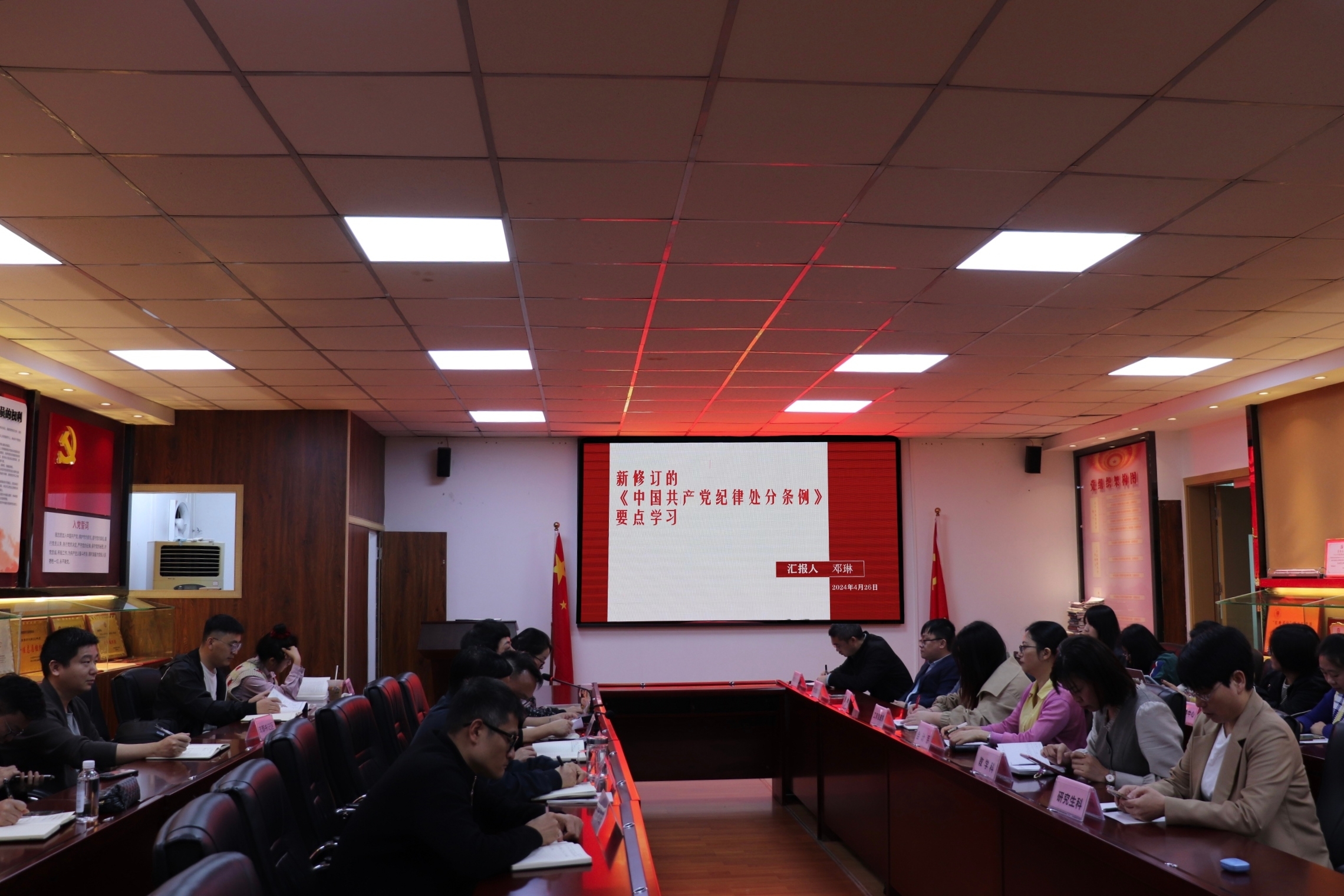 院党委副书记兼纪委书记邓琳同志做党纪学习教育读书班专题辅导,重点就《中国共产党纪律处分条例》向与会人员做学习辅导,主要包括条例制定和修订的重要历程、新条例修订的重要意义和主要内容、做遵纪守法的党员三个部分。在今年1月8日,习近平总书记在中央纪委第三次全会上专门强调:“以新修订的纪律处分条例为契机,在全党开展一次集中性纪律教育。”