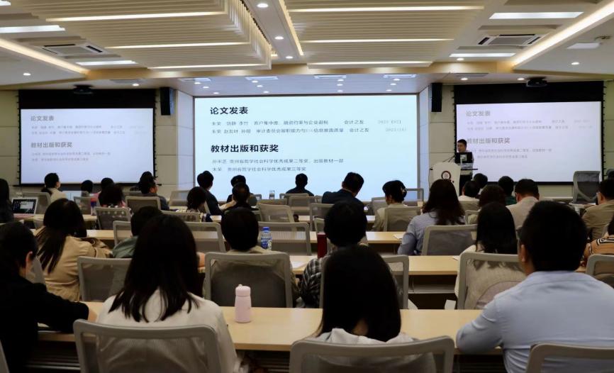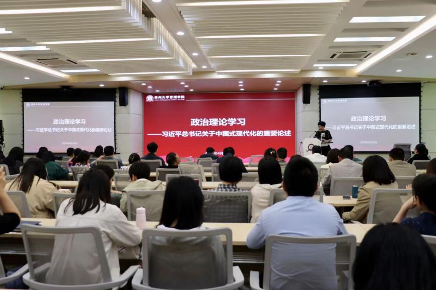 会议伊始,贵州大学党委正处级组织员、管理学院党委副书记(主持党委工作)周莉莉带领大家进行政治理论学习。重点对“习近平总书记关于中国式现代化的重要论述”“习近平总书记关于高质量发展的重要论述”“习近平总书记在中央经济工作会议上的重要讲话” “省委经济工作会议精神” “2024年贵州省政府工作报告”等进行了传达学习,同时带领大家深入学习了师德师风的有关文件和精神,并对贵州大学教师师德师风考核实施办法进行详细学习。