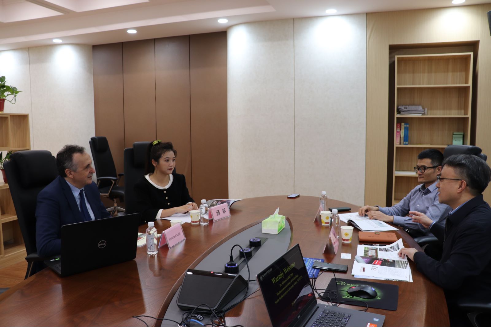Hichem Kallel教授介绍了有关南地中海大学的相关情况,包括:南地中海大学的创建过程、学校性质、校组织架构、学科体系建设、以及其所在学院和研究团队的情况等,并希望双方学院能基于现有专业体系达成实质性合作。