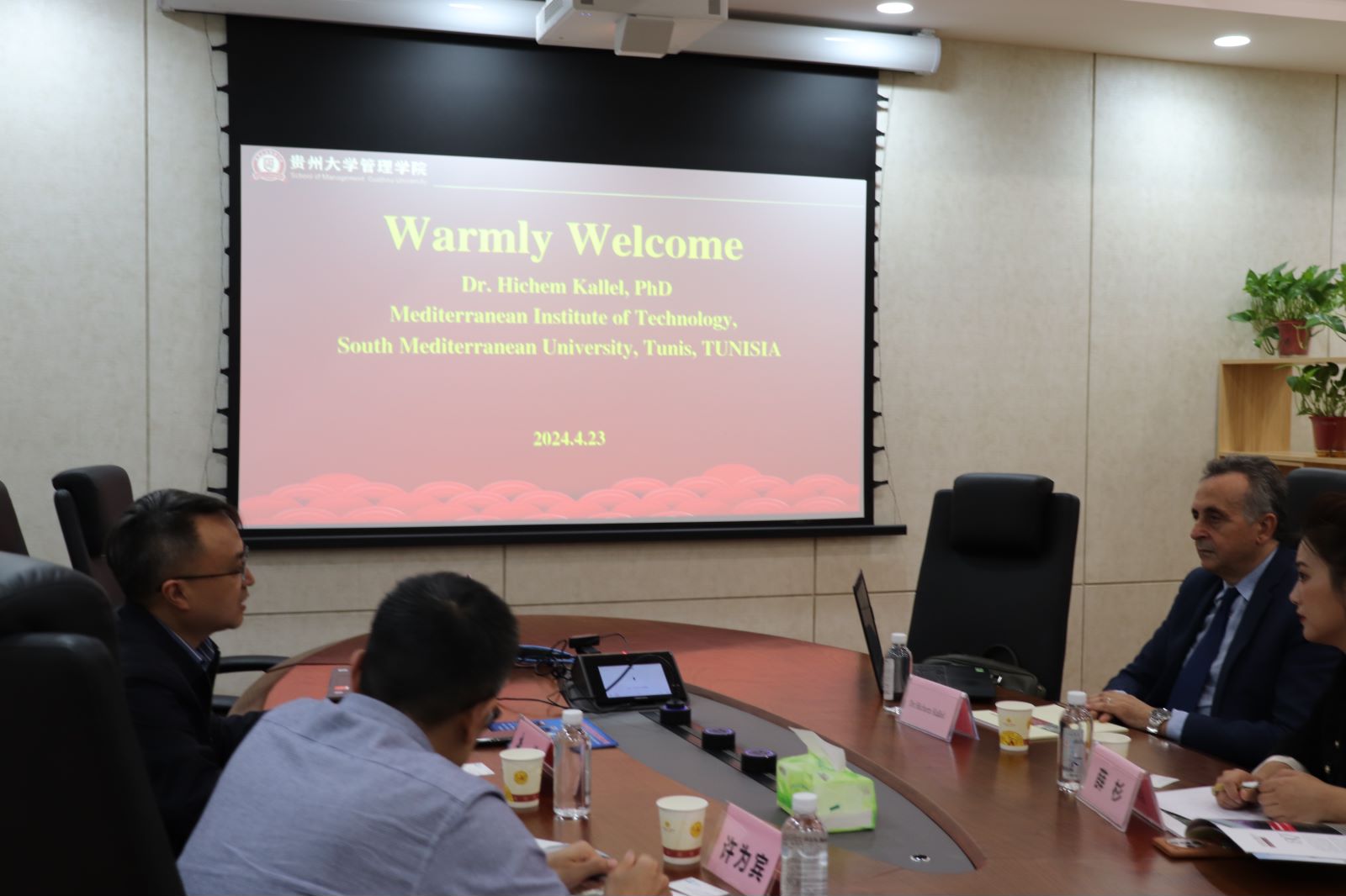 首先,李烨院长向Hichem Kallel教授介绍了新利网页版,新利(中国)官方在线登录的基本情况。他指出,管理学院高度重视学院的国际化发展,目前学院有专任教师110余人,其中10余人毕业于海外高校。中国的持续发展,特别是当今贵州的快速发展吸引了越来越多的优秀海内外人才加入到新利网页版,新利(中国)官方在线登录。学院在未来将持续强化推进国际交流与合作工作。