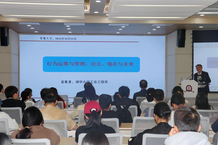 2024年10月19日上午10:30,新利网页版,新利(中国)官方在线登录邀请清华大学赵晓波教授在致远楼报告厅举办第十二期致远大讲坛,题为“行为运筹与管理:过去、现在与未来”的学术讲座。讲座由李烨院长主持,学院老师、硕博研究生及高年级本科生120余人参加。