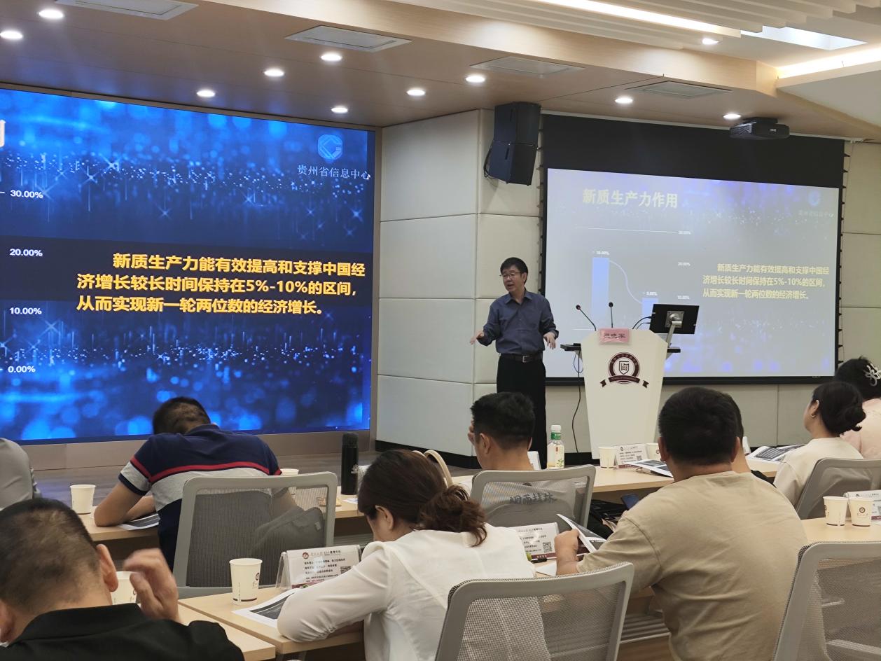 本次课程围绕数字经济分为《推进实体经济与数字经济深度融合 服务中国式现代化建设》及《数字经济前沿及贵州实践》两个模块,分别由贵州科学院党委常委、副院长,工学博士韩朱旸老师及贵州省信息中心党委委员、副主任,省社科联常委祖晓军老师进行授课。