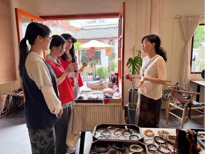 实践队走访了当地特色香坊——“百越布依”工坊,深入学习探究了如何用香,如何制作沉香、檀香、龙涎香等传统香料。传承人介绍,海南和缅甸特产的“降真香”是当地独有的制香原料,香坊秉持“开源传承”的理念,致力于传统制香技艺的保护与推广。香坊不仅完整保留了古法制香工艺,更通过技艺教学、文化体验等方式吸引年轻人参与,让这一古老技艺焕发新生机。实践队建议,可结合现代设计理念开发文创产品,进一步拓展制香技艺的市场空间。